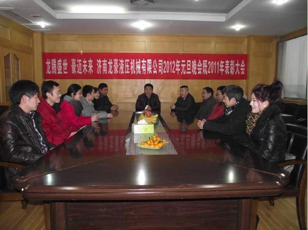 龍騰盛世,豪邁未來,濟南龍豪液壓機械設(shè)備有限公司于2011年12月31日于公司總部召開了2011年表彰大會,同時也為慶祝2012年元旦晚會,首先,公司負責人張總及廠領(lǐng)導(dǎo)的蒞臨公司在年底召開的年終總結(jié)大會,宏觀的總結(jié)了在過去的2011年的工作、業(yè)績情況以及在未來的2012年里的奮斗目標和公司的發(fā)展方向。公司銷售部負責人也就在2011年的銷售狀況和工作內(nèi)容進行了詳細的分析和具體的數(shù)據(jù)統(tǒng)計,也為新一年的銷售情況制定目標和銷售項目;廠里技術(shù)部負責人總結(jié)現(xiàn)有的技術(shù)基礎(chǔ),為明年的技術(shù)創(chuàng)新和改革而努力;生產(chǎn)部負責人也進行了總結(jié)性的發(fā)言,積極配合銷售部的工作,做銷售部堅實的后盾。此外,公司領(lǐng)導(dǎo)也對優(yōu)秀員工進行表彰,激勵員工為下一年的工作繼續(xù)努力,更創(chuàng)輝煌!