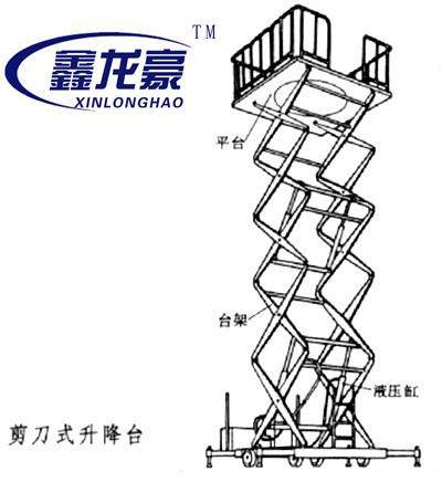 液壓升降平臺(tái)構(gòu)造為剪叉式主結(jié)構(gòu),其工作原理為,有液壓升降平臺(tái)專用一體式泵站把液壓油通過(guò)液壓高壓油管輸送到平臺(tái)液壓油缸內(nèi),液壓油的推力使得液壓油缸伸長(zhǎng),油缸伸長(zhǎng)使得剪叉的主結(jié)構(gòu)受力,從而使液壓平臺(tái)的臺(tái)面起升,由此完成了這里升高過(guò)程。